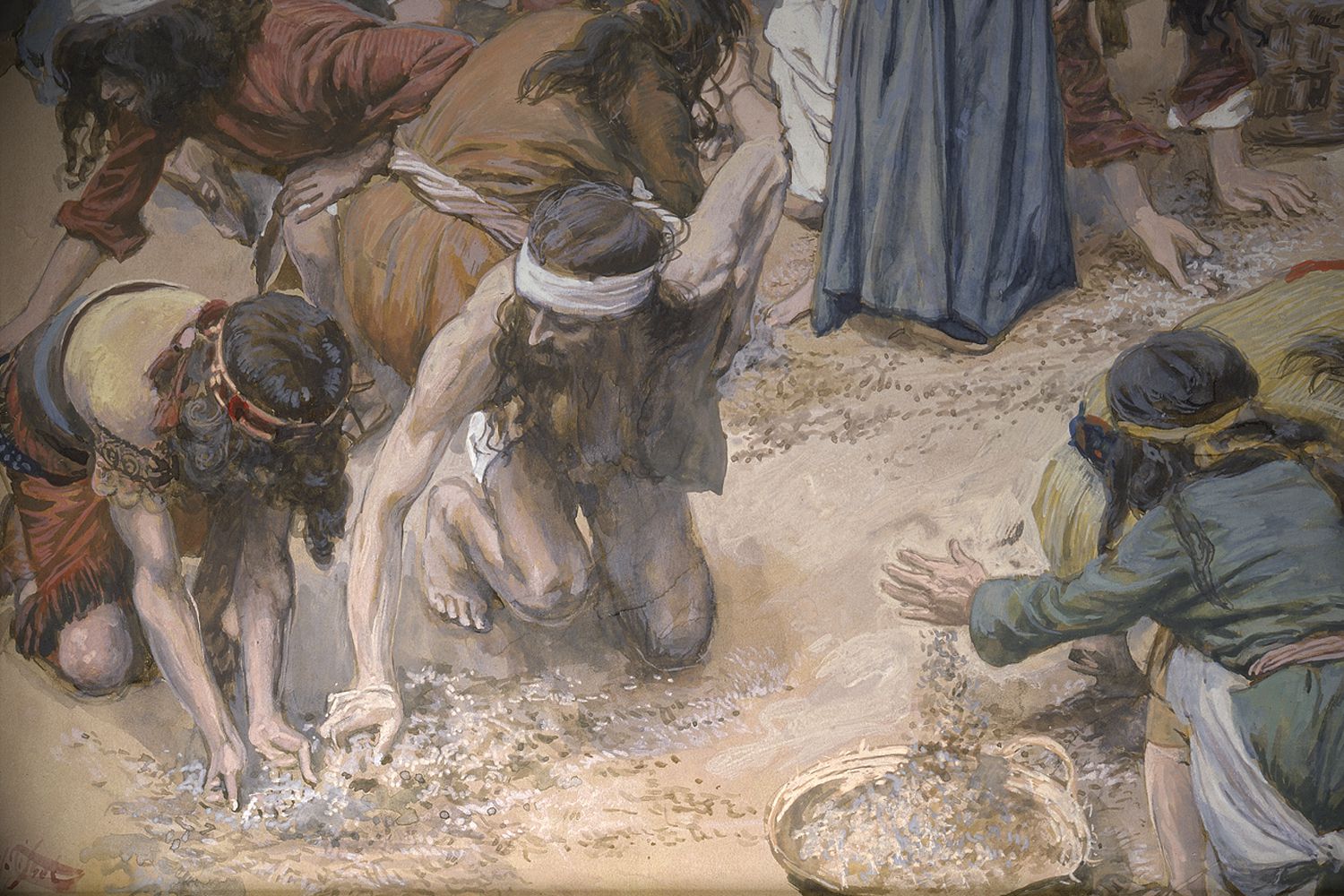 ABOVE: Hebrews collecting manna from heaven, for bread cakes in the desert. NOTE: A jar of manna was one of the three objects stored inside the Tabernacle’s Ark of the Covenant. Its placement there was to remember God’s provision and compassion, while wandering in the desert for 40 years.